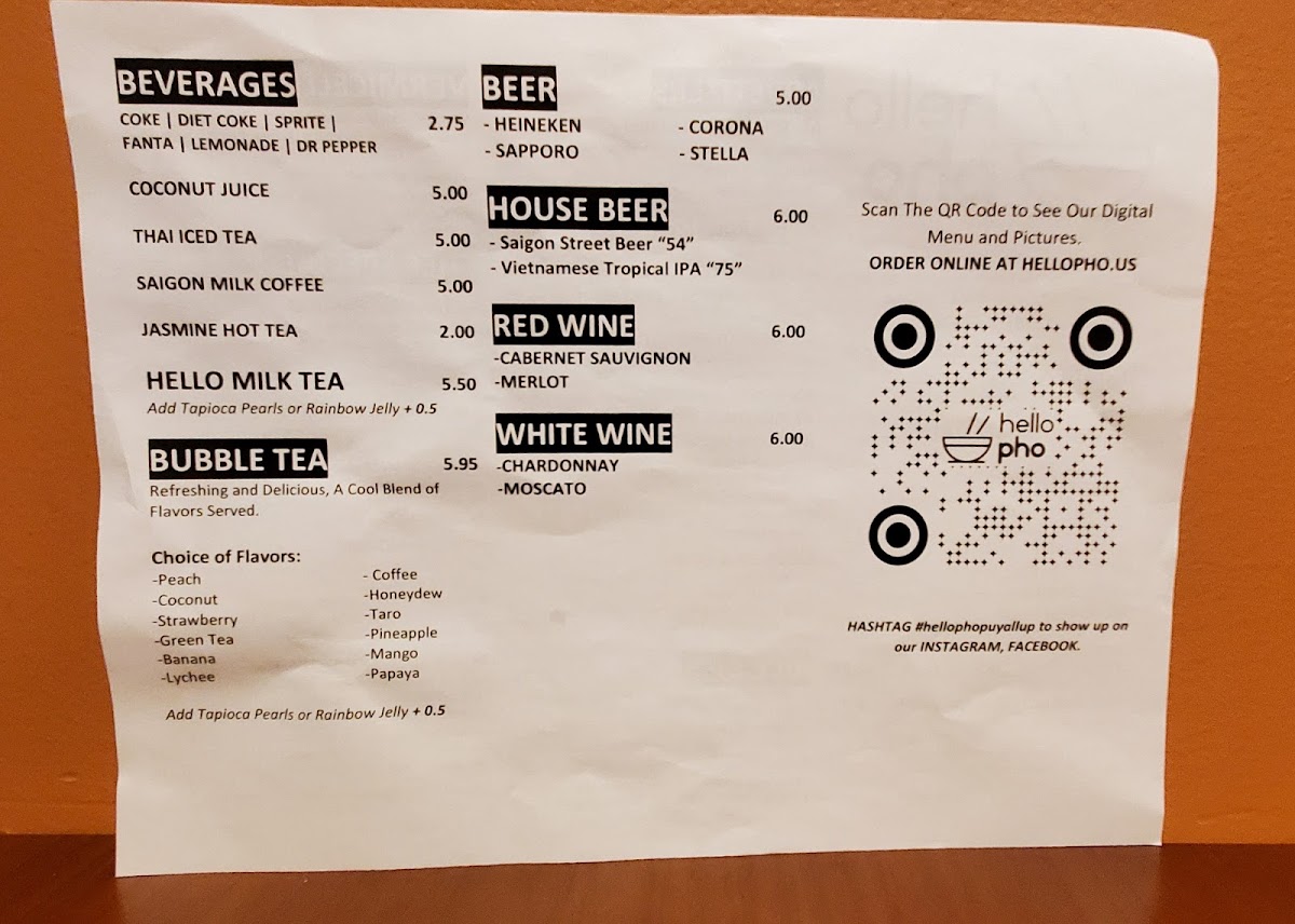 As you step inside, you'll be greeted by a clean, inviting atmosphere enhanced with tasteful decorations that give the place a cozy yet upscale vibe. Friendly service complements the ambiance, ensuring that your dining experience is as enjoyable as the food itself. Whether you're seated for a casual meal or a late-night craving—Hello Pho is open until late, making it a perfect stop any time of day.