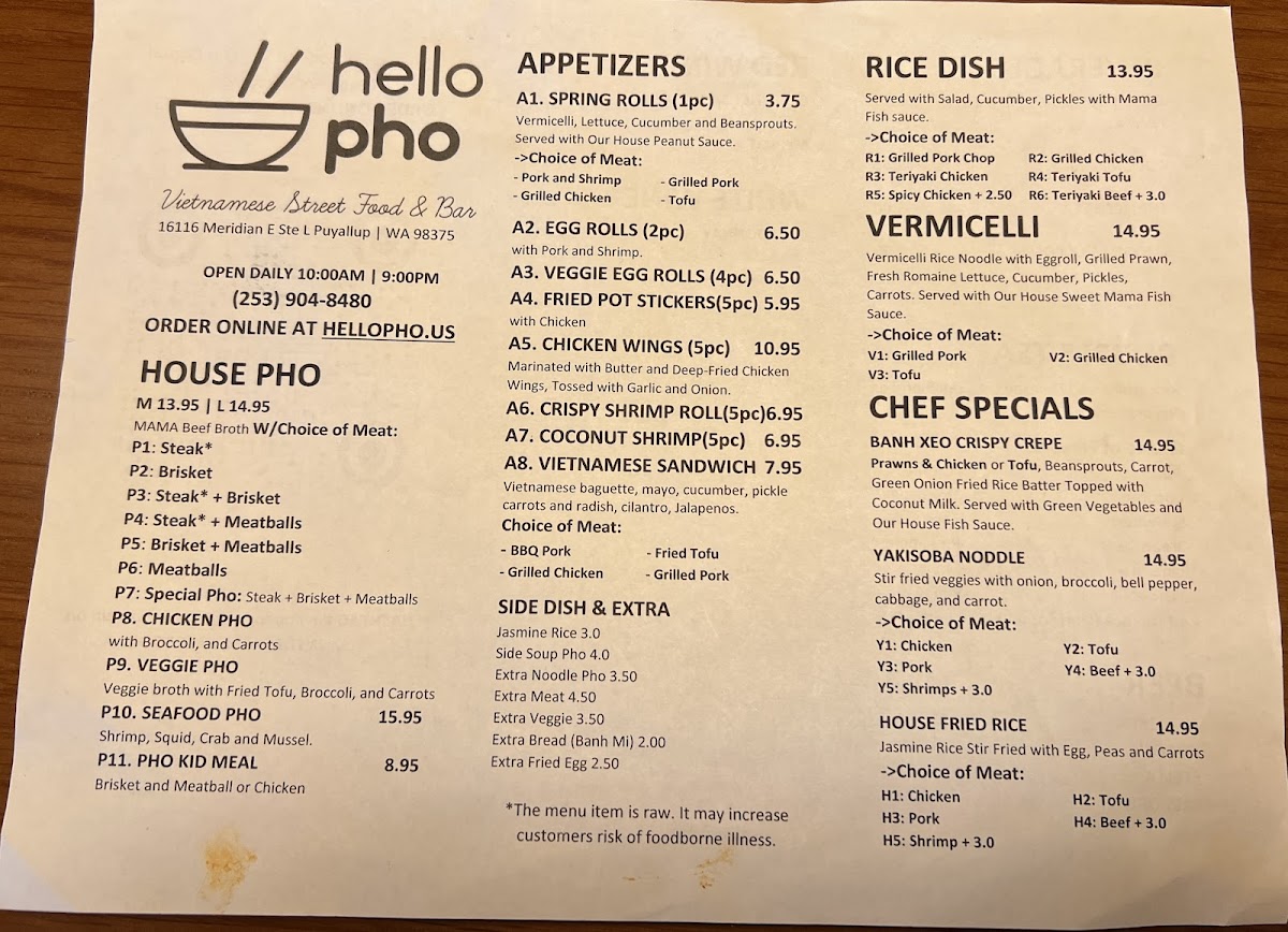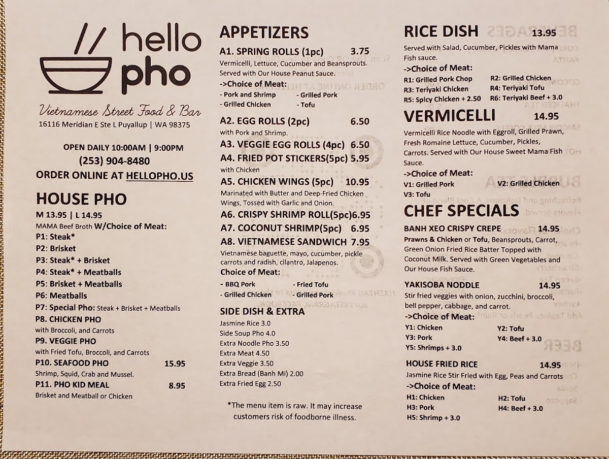 If you're in the mood for an authentic Vietnamese dining experience in Puyallup, look no further than Hello Pho. Nestled at 16116 Meridian E Ste L, this charming pho restaurant offers a delightful escape into the vibrant and aromatic world of Vietnamese cuisine.